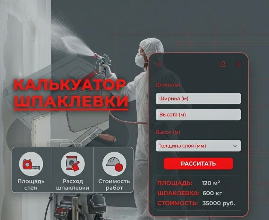 Бесплатные калькуляторы ремонта: расчет штукатурки, шпаклевки, материалов и работ для стен, потолков в квартире или доме. Узнайте точный расход смесей и стоимость отделки.